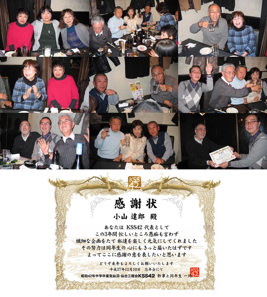 ●KSS42感謝状プロジェクト-2は小山代表に勝手ながら贈らせていただきました。